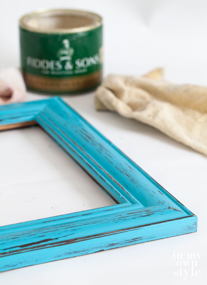3. Apply a thin coat of soft wax over frame and buff to a shine with a soft-lint free cloth. If you would like to know more details about making and painting with DIY chalk painting, you can find my post where I answer all your chalk painting questions.