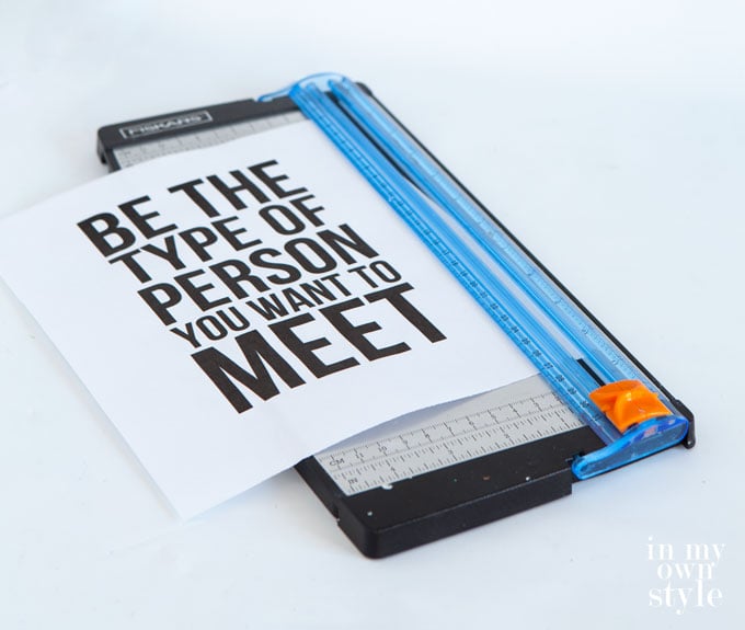 5. The opening of my frame was 8″ x 10″. Since the quotes and images I print are on standard 8 1/2″ x 11″ printer paper, I had to cut my printables down to size.