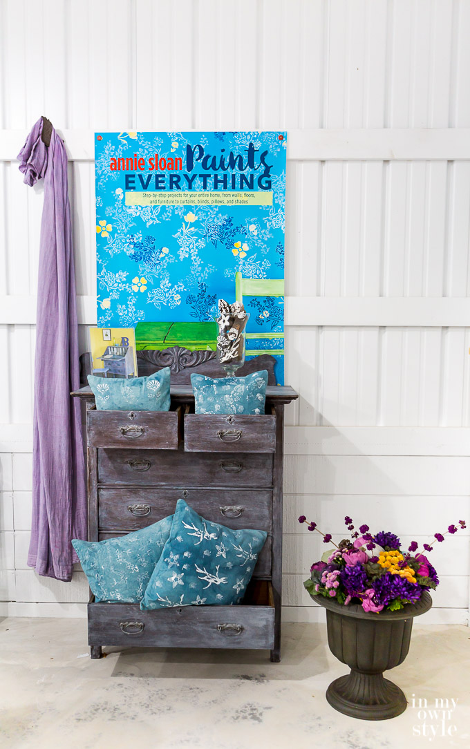 I want to paint an old sewing machine cabinet and use it as an accent table. I am also dying to try fabric painting on an old chair of my grandmother’s. I sure could use this book. Thanks so much for the tips!