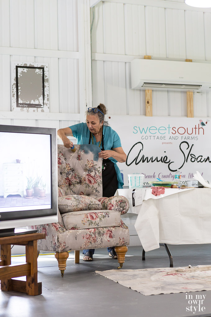 The highlight of the workshop for me was seeing how she painted a large wing chair with chalk paint.