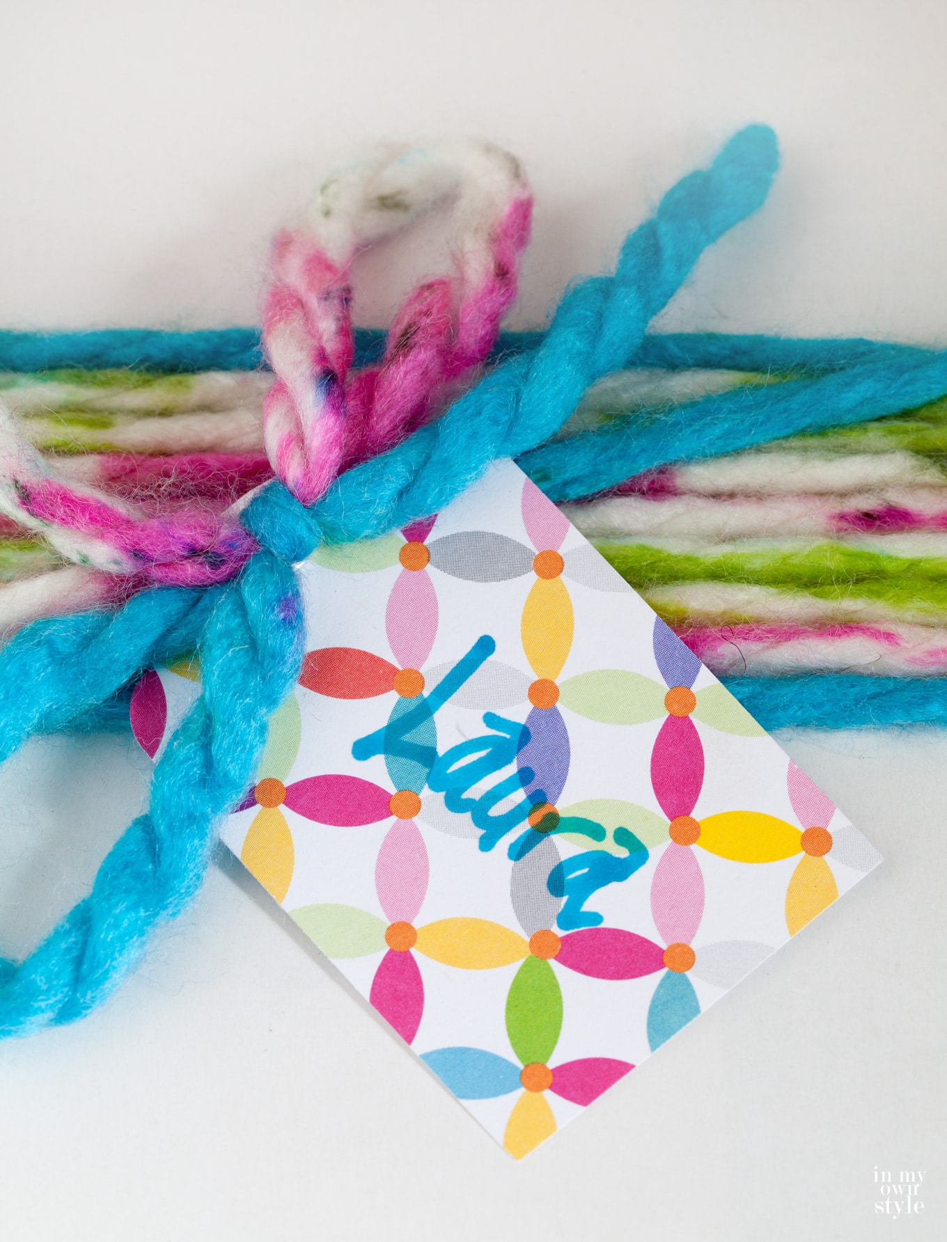I got one of these tag makers a year ago and use it all the time! I love being able to recycle pretty cards and it adds so much to the beauty of the gift. For anyone wanting to snag one, JoAnn’s Fabric stores usually carry them and they accept competitor’s coupons even if you don’t have one from the store!