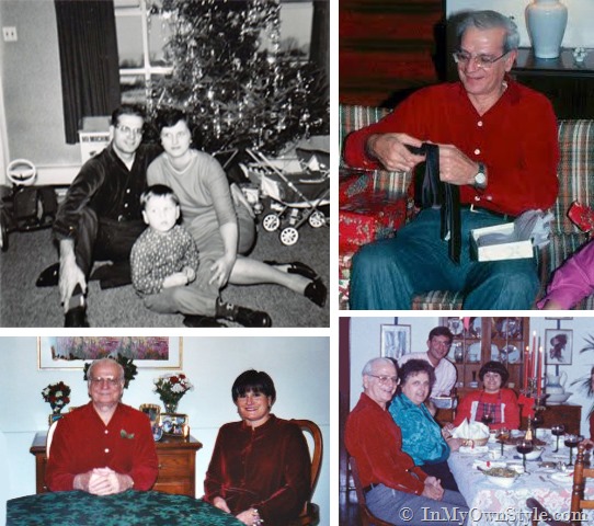 He wore it every Christmas Day since – if my math is right – that would be 59 years. Little did my mom’s Aunt know how much her handmade gift would be loved and cherished. It is not Christmas for my family without my Dad wearing his red velvet Christmas shirt.