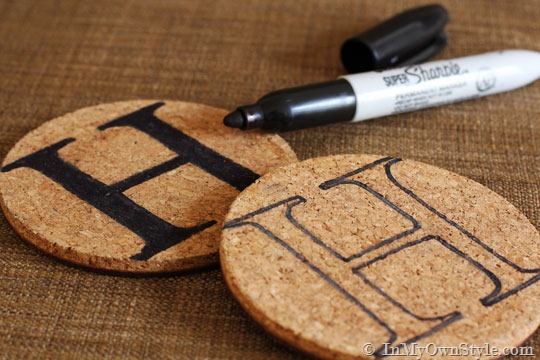 These easy and affordable initialed cork coasters covers both. No matter if you have people coming or you’re going – there will be a need for coasters for all the holiday drinks that will be served.
