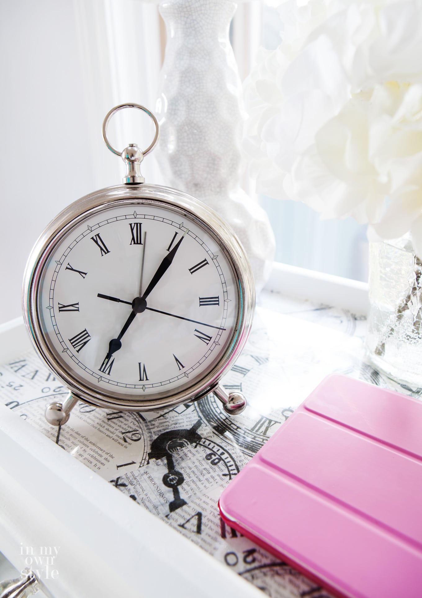 Tick… Tock… tick… tock…It was finally time to hang my favorite clock. Over the weekend I hung it on the small wall at the back of my kitchen where I can enjoy seeing it every day.