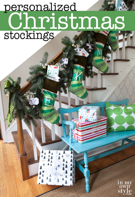 Since I know for a fact that Santa will fill our stockings no matter where we place them, I decided to change where we hang our stockings and hang them along the staircase banister in the foyer.