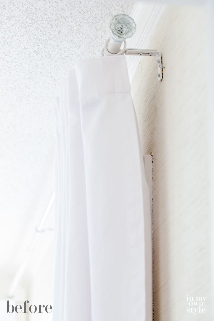 I have many that I removed, but since I don’t like to post about things that readers won’t be able to easily find at a craft or hardware store, I came up with an even simpler way to close up the side opening between a drape/curtain and the wall.