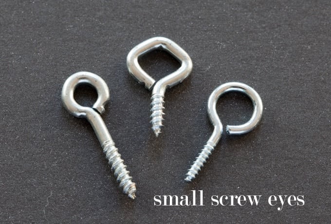 The eye hooks I used are 1-long, but any size can be used. The most important part is just making sure the hook/circle is big enough for the end of the curtain hook to fit through. 1″ is fine. Here is a link to them: https://amzn.to/33E3UXy