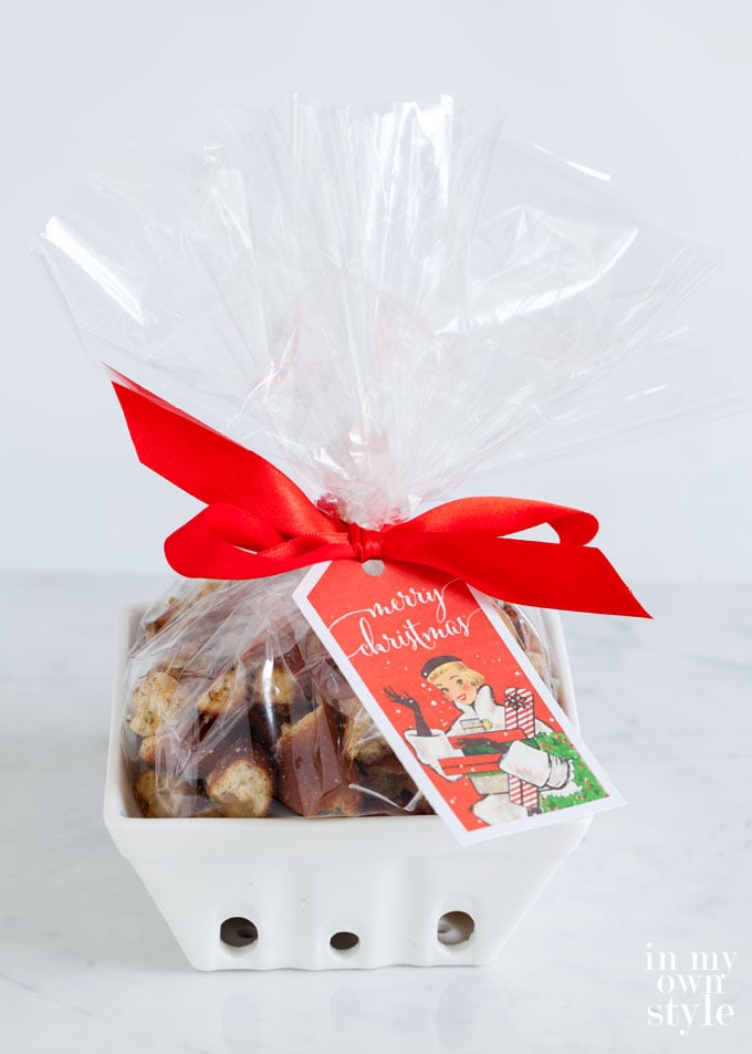 I made it into gift tags and have a free printable for you to download. It is after the recipe for the garlic pretzels.