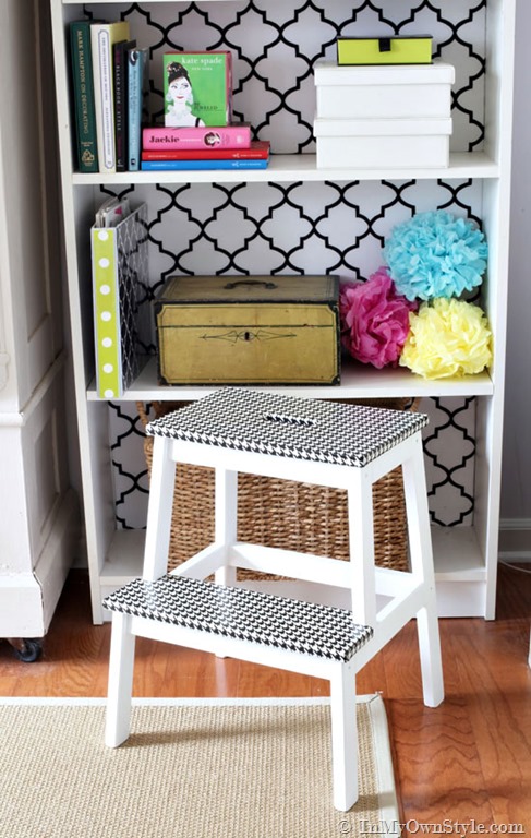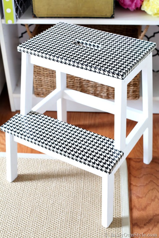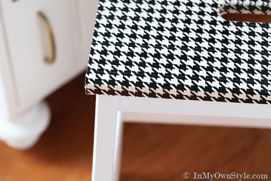 This is so cute. And you know what I have the very same stool in my garage in the box. I just bought it two weeks ago. I’m in the middle of a laundry room make over so I have not even thought what I will do with it but certainly something crafty!!! Love the Houndstooth.