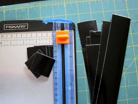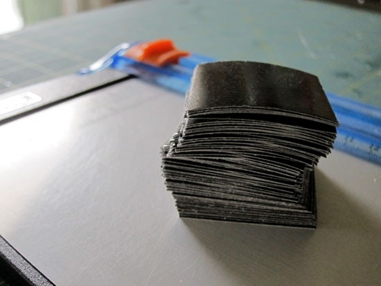 I used a paper cutter to first cut the vinyl into strips and then squares the size I needed.