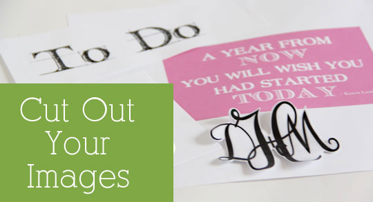 You can make a computer printout of your initials using a favorite font decoupage a monogram print, or favorite quote onto a piece of glass to personalize your paperweight.
