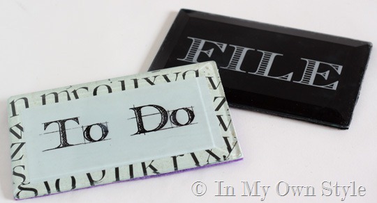 With a printed copy of the words – To Do and FILE, decoupage medium, scissors, and glue I had myself two brand new handmade paper weights for my desk.