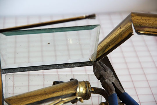 taking apart brass light fixture to repurpose the glass to make a pretty DIY paperweight.