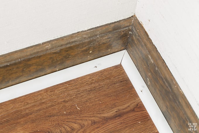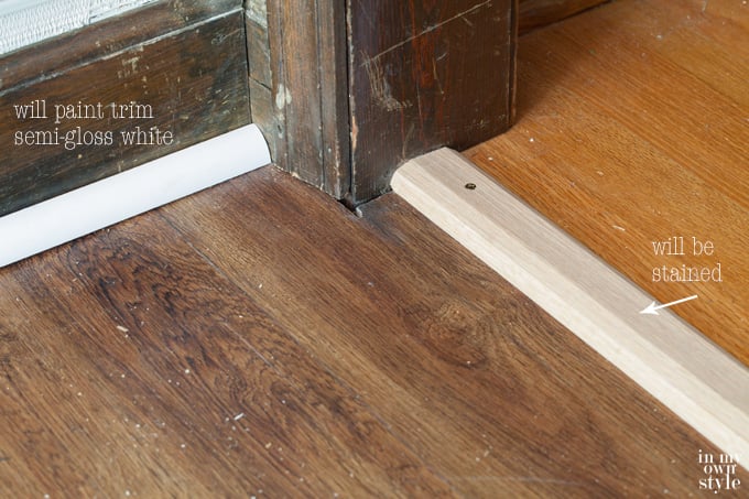 Now that the flooring is installed, my next project is to prime and paint all the existing brown trim in the room white.