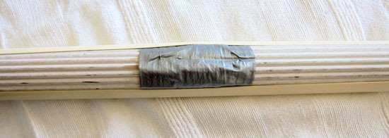 For the rod, I duct taped two shorter rods that I had on hand together. That alone was not enough to keep it rigid so I had an old plastic shower rod tube in my basement and encased my duct taped rods in that. Presto- Change-o a rod. It may not be pretty – but