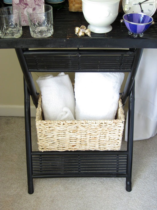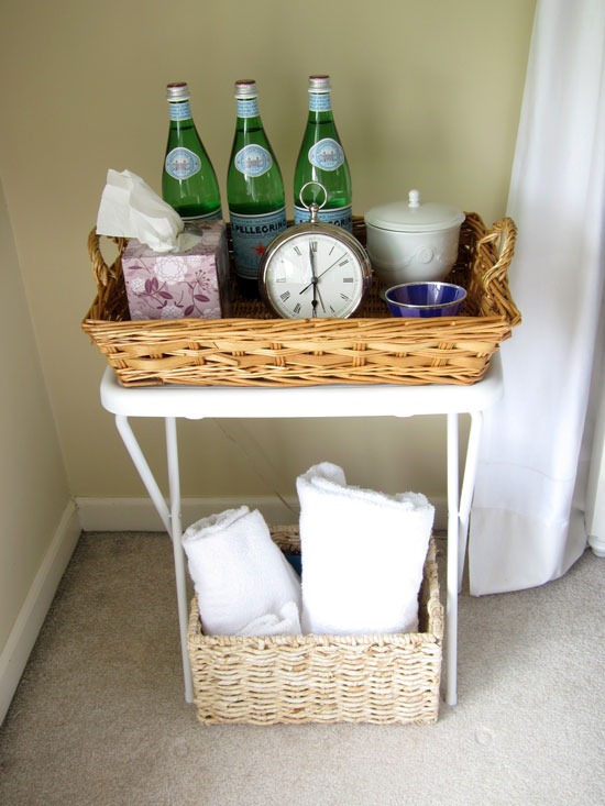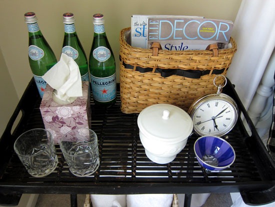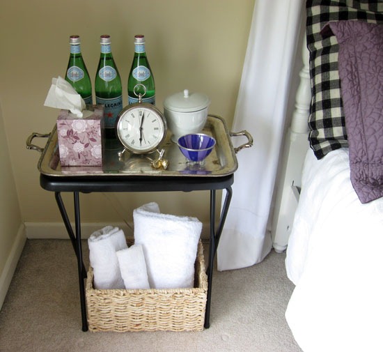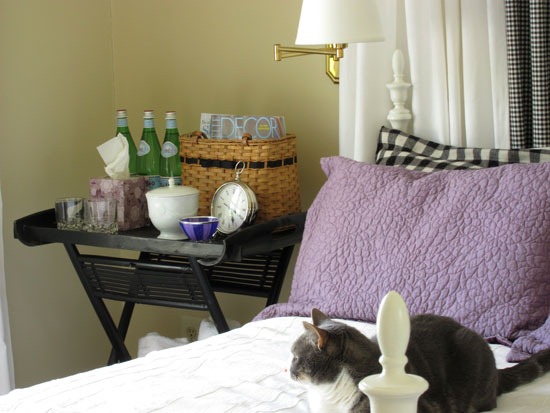 I love the colors in your guest room! The butler’s table is a super idea. I especially like the items you included for your guests’ comfort.