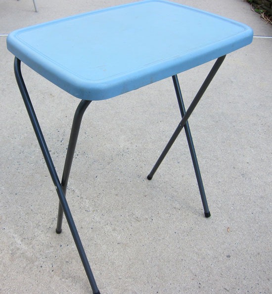 TV tray tables, luggage racks, and trays of all shapes and sizes are abundant at flea markets and thrift stores if you can’t unearth any hidden away in your basement.