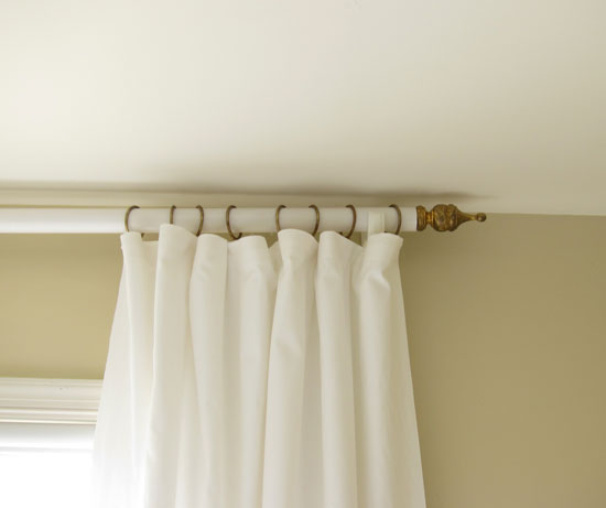 This drapery hardware solution is fabulous! I love the contrast of the gold rings against the white…Janell