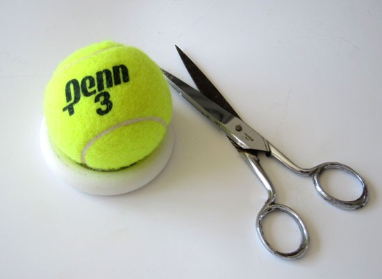 To make a curtain rod finial using a tennis ball, you will need 2 tennis balls – old ones that have lost their pep are much easier to cut than the brand new balls.
