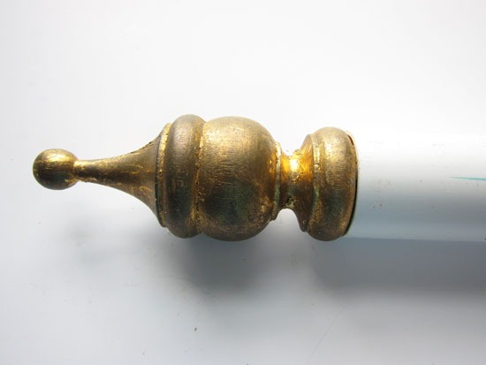 Finials known as the decorative ends of a curtain rod are where you can add your own personal style to the decor. I had leftover gilded finials in my basement from a past window treatment.