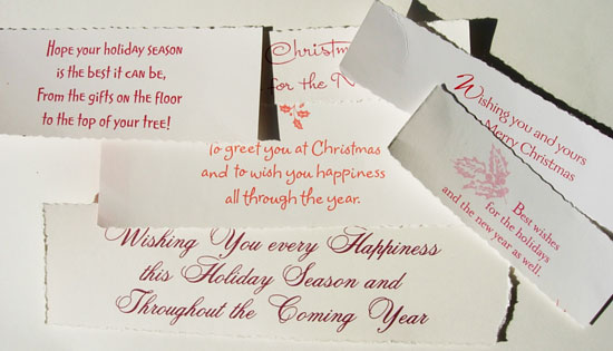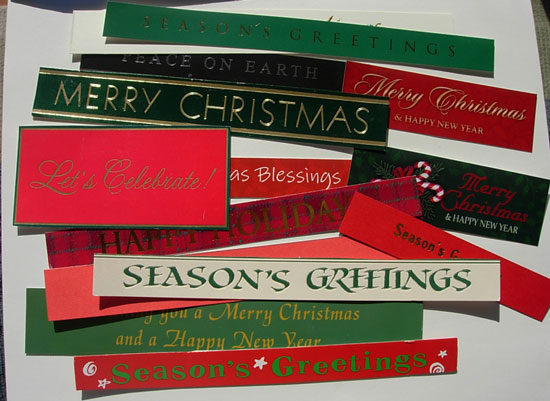 3. Cut a variety of greetings from the front of cards and keep in a separate pile.