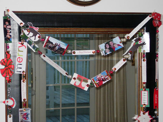 FABULOUS IDEA! I just squealed when I saw this. Wish I had saved cards from last year so I can get a head start, shoot! Love this on the mirror, but could also see it as swags on a Xmas tree.