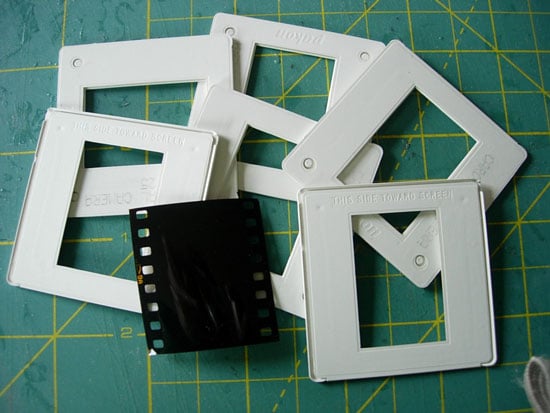 I love to find new decorative uses for things – like these slide mounts that you can find at your local camera store very inexpensively.