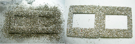 3. While the paint is wet – pile on the glitter -then shake it off