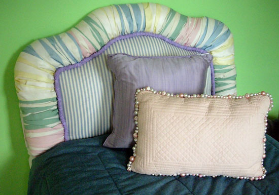 The only other tip I can think of that will make the headboard look good, is to make sure you pull the fabric very tightly around the headboard. If there is a pattern in the fabric – make sure as you pull it taut, that you don’t make the pattern look skewed. If the fabric is light in color – the color of your foam may show through. Line the foam first with white cotton fabric, then your decorative fabric.