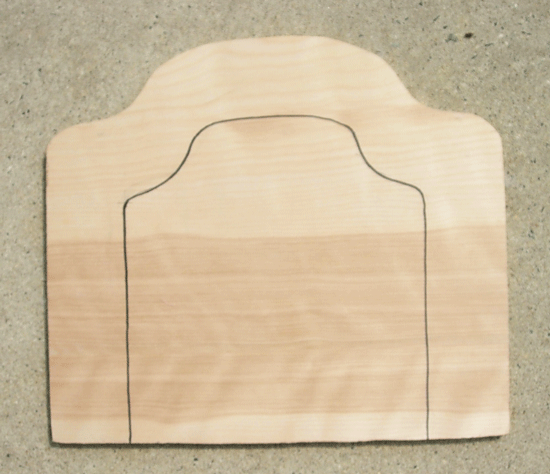 1. Cut board to size and shape desired with saw. If you are making a square or rectangular shape then you can use a table saw. A jig saw works if you are cutting a curved shape like the one below. Draw the shape again with a magic marker in the center of the board. This will be the center padded area.