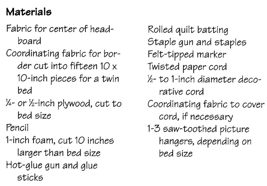 I was recently up in my attic and came across two headboards that I had made for my daughters’ beds when they were little. I forgot all about them. They were one of the project’s in my book, Instant Decorating. The photo above is from the book.