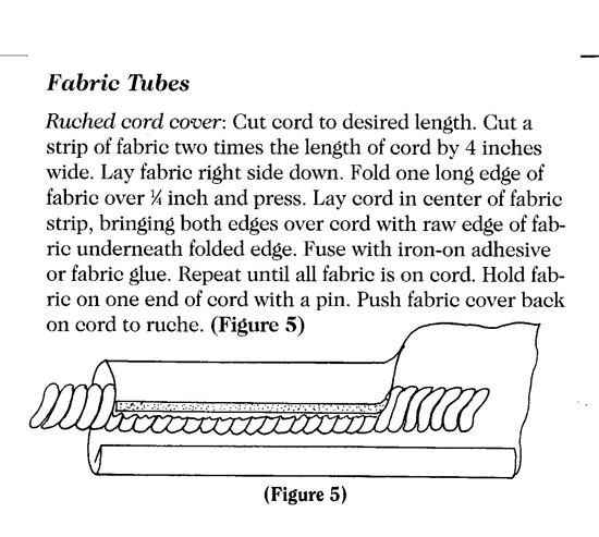 6. Decorative cord is used to hide the staples between the center and border fabrics. I could not find cord in the color I wanted, so I covered cord by using fabric and fabric glue to cover the cord. I pushed it back as I went to ruch the cover.