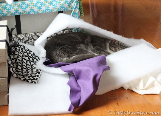 Your pillow cover is amazing and I will certainly make some up as just this morning I found Roni sleeping snug as a bug on a pile of my clean, folded laundry – I knew that I should have put it away yesterday – ha-ha!!
