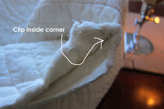 I clipped each corner so the fabric would lay flat when placed on the ottoman.