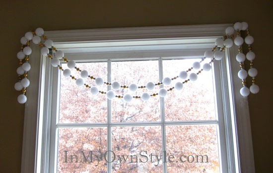 Garlands are not just for Christmas trees. If you make them long enough you can hook them over two small nails placed on either side of a window and they become a festive holiday window treatment.