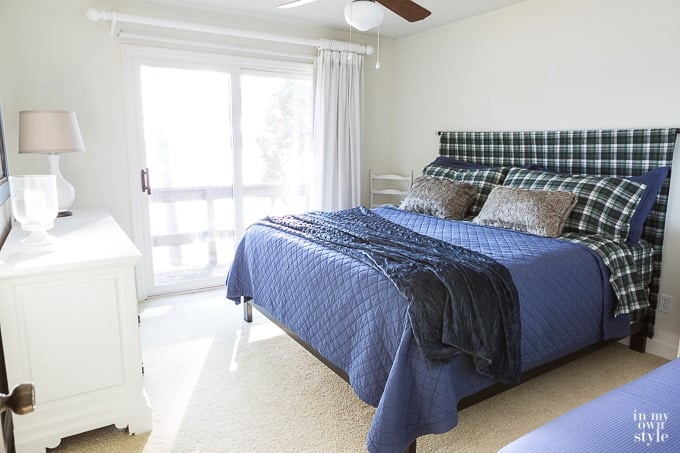 I always like to have a coverlet or throw on the bed so guests can get comfy and take a nap without having to unmake the bed. This one is king size and so soft since it is made with minky fabric.