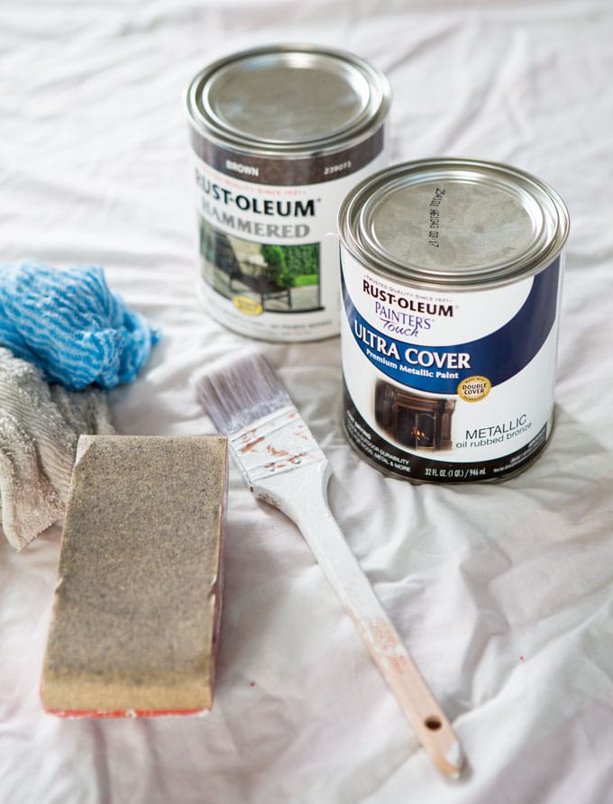 I wanted an oil-rubbed bronze finish, so I painted the frame the day it was delivered using Rustoleum Ultra Cover paint in Metallic Oil-Rubbed Bronze. I sanded the finish to rough up the surface to provide some tooth for the paint to adhere to.