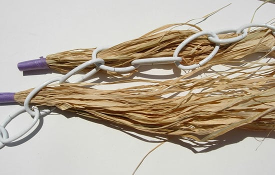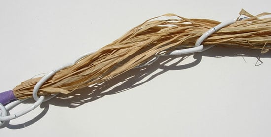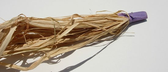 Tape together one end of a small bunch ( 1″ in diameter) of raffia