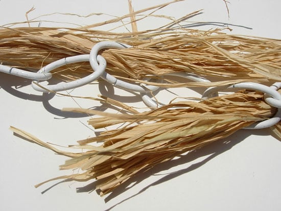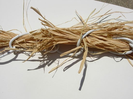 My raffia was 36″ in length, shorter than my chain so I had to add a new length of raffia. Start the second one where the first one ended.