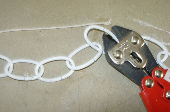 Cut chain with wire cutters to that measurement. If you don’t have wire cutters, when you are purchasing the chain, know the length in advance and have them cut it in the store.