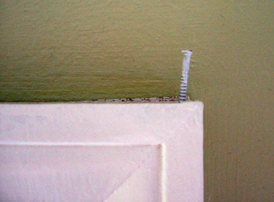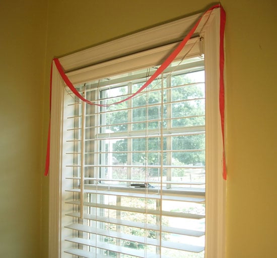 I am just putting this up for the summer. If you have a wall in your basement or storage area you can hammer in two nails a window width apart and hang the finished treatment in the off season.