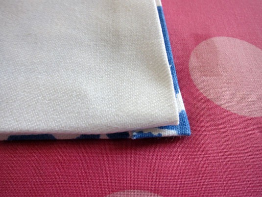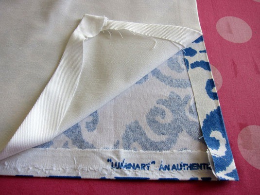 Cut the fabric and lining to the same size. Press all edges over 1-inch. Use fabric glue or iron on-adhesive to attach the two pieces.