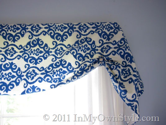 You can use any rectangular piece of fabric to create this valance –with unfinished edges, unlined, or lined. You are the designer.