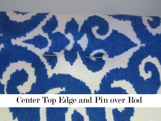 1. Find the center along top edge of fabric and pin it over the center part of the rod. (This pin will be removed later)