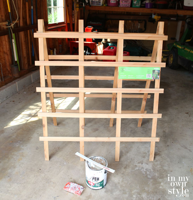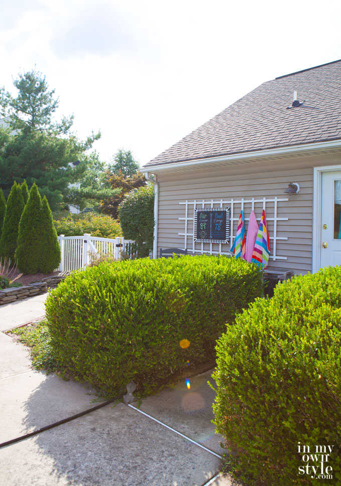3. Use 2 screws or nails to hang the painted trellis. I wanted it to be secure, but easy to take on and off once winter comes around.