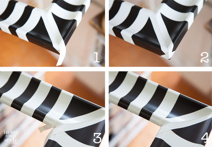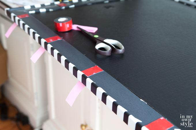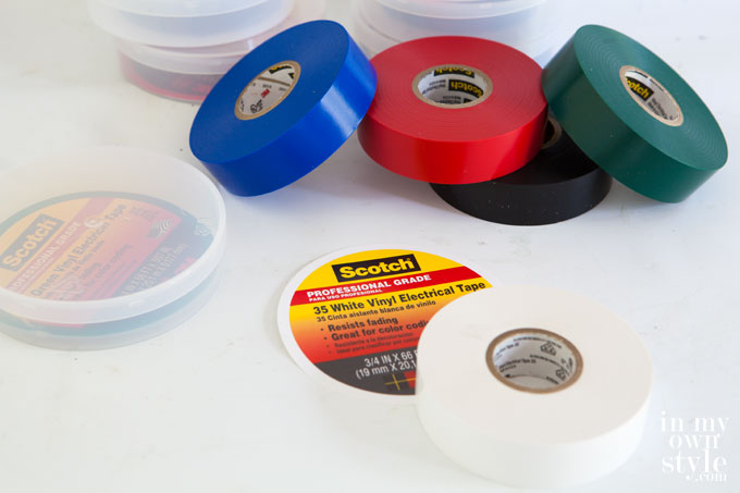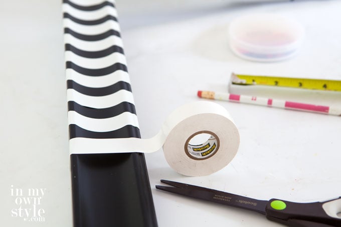 6. To create the stripes on the chalkboard frame I used Scotch® Professional Grade 35 White Vinyl Electrical Tape.