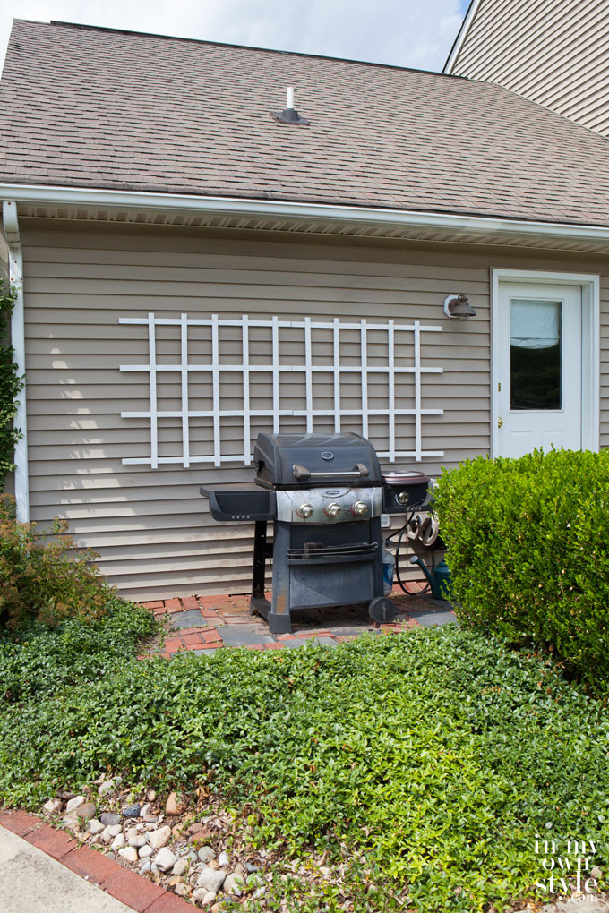 OPTIONS: I chose to use the trellis as a way to organize around the grill, but you can hang just about anything from it. In the photo above I screwed 3 cups hooks into the trellis and it becomes a place to hang wet towels.