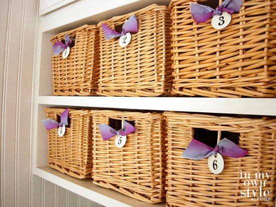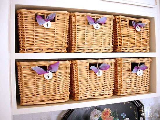 This is such a beautiful idea and I love how it really jazzed up the baskets.It is amazing what those little “extras” do for things.