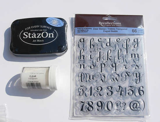 I used clear stamps for perfect placement of the numbers on the tags. You also need a Black StazOn stamp pad and clear embossing powder. I found these at Michael’s.