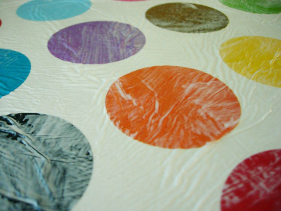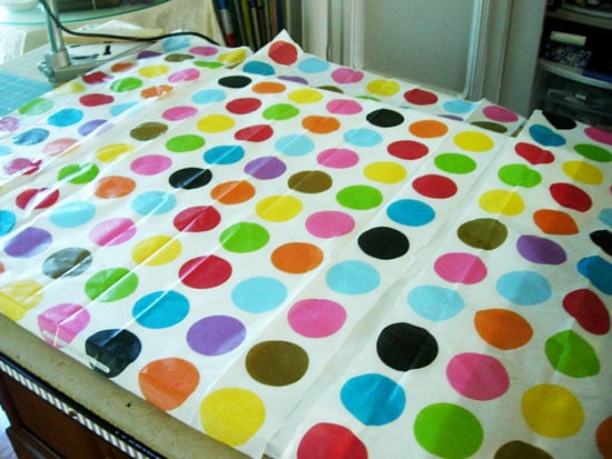 This is gorgeous! Originally I thought you had cut all those circles out of colored tissue paper and lined them up and I was really impressed by your perseverance. When I saw the printed paper I knew you were a very clever woman. I love the way this turned out!